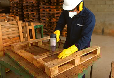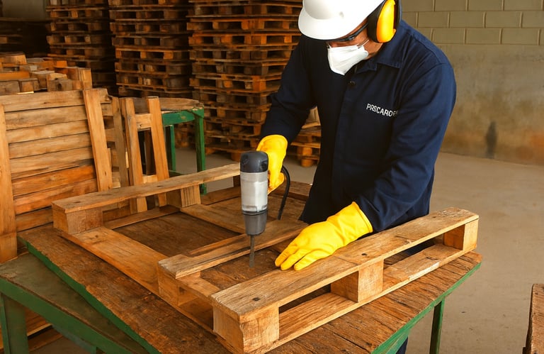 Também realizamos reforma de paletes, garantindo a recuperação, padronização e reutilização das peças, contribuindo para a eficiência operacional e redução de custos.