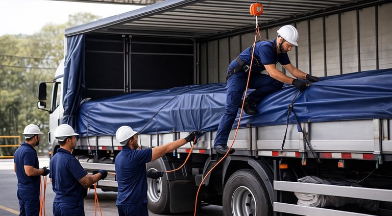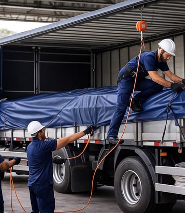 Garantimos segurança e eficiência na amarração e enlonamento de cargas, com equipes treinadas e processos rigorosos.